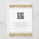 Código QR Glam Bordes de Purpurina Dorada Boda. Agregue su código QR al sitio web de su boda en la parte posterior, lo que hace que sea una opción conveniente para que sus invitados respondan y vean todos los detalles sin la necesidad de tarjetas de RSVP y detalles separadas. Un conjunto de guiones elegante para el título principal La Boda De que complementa el resto del texto que puede personalizar fácilmente, con bordes de purpurina dorada en la parte superior e inferior y también en la parte posterior.