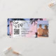 Destino Boda Boda Embarcadero Pasaje Boleto Avión de oro Guardar la fecha con el icono del corazón y el avión con la línea minimalista simple mapa del mundo de arte y fondo de playa de palmaAñadir su código QR