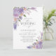 ¡Oh, qué bonito! Crea la invitación de boda perfecta con este moderno diseño floral de moda de lila, lavanda y malva, con ramos florales de acuarela y tipografía con escritura con letras a mano, con QR Code RSVP y Detalles de Boda en la parte posterior de la tarjeta. Póngase en contacto con el diseñador para obtener productos coincidentes. Copyright Elegant Invita, todos los derechos reservados.