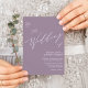 Mauve Purple QR Code Todo En Un Elegante Script Moderno Tarjeta De Invitación A La Boda Minimalista. Celebra tu día especial con esta elegante y hermosa tarjeta de invitación a la boda para embellecer tu ocasión especial. Todos los textos están preorganizados para que puedas personalizarlos fácil y rápidamente con tus propios detalles. Si necesita más personalización o elementos coincidentes, por favor envíe un correo electrónico a alldaybreakfastzazzle@gmail.com - nos encantaría ayudarle.