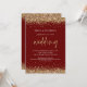 Invitación Código QR moderno con brillo dorado boda burdeos