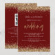 Código QR moderno con brillo dorado para boda en color burgundy. Agregar su código QR en el sitio web de su boda en el reverso hace que esta sea una opción conveniente para que sus invitados respondan y vean todos los detalles sin necesidad de tarjetas de RSVP y detalles separadas. Puede crear códigos QR de forma gratuita en línea. Simplemente busque "creador de código QR" y aparecerán muchas opciones para crear de forma gratuita. O puede eliminar esto si no es necesario. Un conjunto de escritura a mano para la boda y el resto del texto se puede personalizar fácilmente, con un borde de brillo falso en oro en ambos lados.