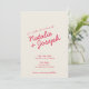 Esta invitación a la boda es perfecta para su boda si busca un diseño único y fácil de editar.Una elegante y sencilla invitación a boda crema minimalista. El fondo es de color beige claro. Y magenta nombres de novias y novios con letras de la mano roja. e información editable y foto en el código de la parte de atrás y QR para que tus invitaciones puedan ver RSVP en línea . Asequible y también es una invitación electrónica digital si quieres enviarla por mensaje de texto o correo electrónico. Toda la información es personalizable haciendo clic en el botón de personalización. Así que agárralo y hazlo tuyo para que invites comprometidos y emocionados.