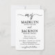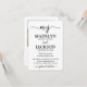 Esta invitación es pequeña en tamaño pero grande en simplicidad moderna. Invite a familiares y amigos a una celebración de boda simplemente elegante con una invitación elegante y única de 3,5 "x 5" todo en uno con código QR para responder. Con solo una tarjeta puede invitar a los invitados de la boda a su próxima celebración del día especial, proporcionar toda la información importante (como direcciones, registro, alojamiento de hotel) y dejar que el sitio web organice las respuestas. No se necesitan tarjetas de inclusión adicionales. La imagen y todo el texto son fáciles de personalizar para incluir cualquier detalle que desee. (CONSEJO DE COLOCACIÓN DE IMAGEN: Una forma fácil de centrar una foto exactamente como la desea es recortarla antes de subirla al sitio web de Zazzle). El diseño moderno minimalista en blanco y negro presenta una foto de la pareja comprometida, 2 códigos QR personalizados, tipografía de estilo de máquina de escribir chic y una monograma de iniciales de caligrafía manuscrita de moda. Al escanear un código QR con la cámara de un teléfono, los invitados se envían directamente al sitio web de la boda para obtener más detalles y responder a la invitación. Un proceso de respuesta en línea reduce la posibilidad de que las tarjetas se pierdan en el correo. También es más versátil, ya que puede pedir información más específica, como opciones de comida, alergias alimentarias y solicitudes de canciones. Toda la información de respuesta se puede personalizar o eliminar. Esta invitación es una forma elegante de agregar simplicidad a la celebración de su próximo día especial. ¡Felicit