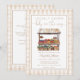 Esta encantadora ducha de bebé está decorada con productos de un mercado y un fondo de gingham. El reverso muestra los detalles del evento y el código QR del Registro. Diseñado por Thisisnotme©