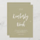 Elegante y a la moda los nombres de los guiones con letras a mano y de los novios informales todo en una sola invitación de boda con escaneo del código QR en el sitio web en blanco y sabio simple. ++++++++++++++++++ Puede cambiar los colores del texto y del fondo después de seleccionar la opción PERSONALIZAR más. +++++++++ La invitación es adecuada para ceremonias y recepciones de boda informales de estilo moderno.