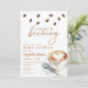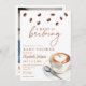 Esta elegante invitación a la ducha para bebés cuenta con granos de café y una taza de café y puede personalizarse con sus detalles en una tipografía elegante. En el reverso se muestra su foto especial y un código QR del registro. Diseñado por Thisisnotme©