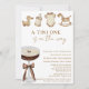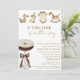 Una Tini One Está En Camino Invitación de Baby Shower Espresso Martini con Código QR - Una invitación de baby shower única y adorable con un martini de espresso adornado con un lazo coquette de color café moca y artículos de bebé, un biberón, caballo mecedor, bodysuit de bebé y patito de juguete vintage, todas ilustraciones de acuarela. Fuente de letra elegante y manuscrita junto a una fuente de letra bloque elegante en tono marrón. Edite esta plantilla de invitación de baby shower con los detalles de su evento. Perfecta para baby showers de primavera, verano u otoño. Para futuras madres o padres que buscan algo diferente y único. Disponible tanto para impresión como para descarga digital, perfecto para enviar por mensaje de texto, correo electrónico o redes sociales. Haga que sea fácil para sus invitados acceder a su sitio web de regalos de bebé agregando el Código QR en el reverso de la invitación.