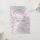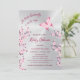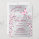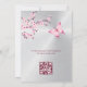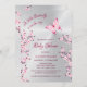 Una mariposa está en camino | Una mariposa rosa caliente y flores de cerezo sobre un fondo plateado. Chica lindo, invitación a la ducha de bebé con textos personalizados en un elegante tipo de letra. Con un escandaloso código qr en la parte trasera para el registro de regalos del invitado de honor.