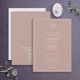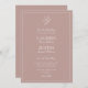 Un clásico y elegante rosa polvoriento y una invitación de boda en monograma blanco, con caligrafía de escritura. Perfecto para la novia moderna que tiene un romance formal. Ahorre el coste en el gabinete estacionario con nuestro código QR incluido en la parte posterior de la invitación para obtener detalles de RSVP y Boda. Póngase en contacto con el diseñador para obtener productos coincidentes. Copyright Anastasia Surridge para Elegant Invitaciones, todos los derechos reservados.