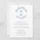 Invitación Código QR RSVP Dusty Blue Monogram Wreath Boda