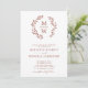 Todo en un código QR RSVP Trendy Terracotta Monograma Invitación a la boda de la corona botánica... En el frente de nuestra minimalista invitación a la boda se presenta una frondosa corona botánica de terracota que muestra las iniciales del monograma de la novia y el novio sobre el texto personalizado de la invitación en terracota serif y sans serif tipografía sobre un fondo blanco y fresco. En la parte posterior de la invitación se muestra el código QR de su sitio web boda, así como la propia dirección URL del sitio web, lo que permite a los invitados acceder fácilmente a RSVP en línea y ver todos los detalles enviados normalmente en un paquete boda. El código QR de ejemplo y todo el texto de ejemplo se pueden revisar fácilmente con su propia información sobre la plantilla de personalización.
