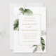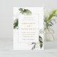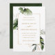 Esta invitación a la boda se lleva a cabo todo en uno y cuenta con follaje tropical de color agua verde, hojas de monstera, hojas de palmera, hojas de plátano con hojas falsas de oro, y los detalles y un enlace al sitio web del código QR en la parte posterior. Es perfecto para una boda de playa, verano, Hawaii o destino. >>> Vea toda la colección >> https://www.zazzle.com/collections/tropical_foliage_gold_collection-119316977990783186