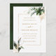 Esta invitación a la boda se lleva a cabo todo en uno y cuenta con follaje tropical color agua verde, hojas de palmera, hojas de plátano y hojas falsas de oro con los detalles y un enlace al sitio web del código QR en la parte posterior. Es perfecto para una boda de playa, verano, Hawaii o destino. >>> Vea toda la colección >> https://www.zazzle.com/collections/tropical_foliage_gold_collection-119316977990783186
