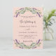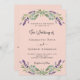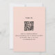 Un fondo de color melocotón a la moda decorado con flores de lavanda y vegetación eucaliptica. Personalice y sus nombres y detalles. Atrás: agregue la URL de su sitio web boda al código QR para obtener más detalles y/o RSVP.