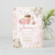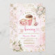 Invitación Coffee A Baby is Brewing Pink Bow Baby Shower Gold