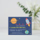 Cuenta regresiva para tener una explosión con esta invitación de fiesta espacial! Esta colorida invitación de cumpleaños con temática espacial viene con un lindo barco que vuela de la Tierra para explorar la galaxia de planetas, estrellas y lo desconocido sobre un oscuro fondo azul cielo. Personalice fácilmente con detalles fiestas.