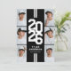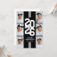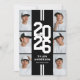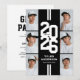 Invitaciones modernas de graduación atlética en blanco y negro con un diseño llamativo del año de la clase en una fuente universitaria, un collage de fotos del graduado, dos franjas blancas, su nombre, escuela y una plantilla de invitación a la fiesta fácilmente personalizable, estas invitaciones deportivas harán que tu celebración sea inolvidable.