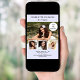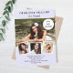 Crea tu propio collage de fotos único. Usa cuatro, cuatro de tus fotos favoritas. Personalice y agregue un nombre y detalles del fiesta. Lavanda, fondo violeta, texto negro.