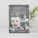 Esta tarjeta de vacaciones de 3 fotos incluye obras de arte con letras a mano y caligrafía, todo ello sobre un fondo de pizarra de moda.