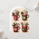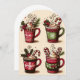 Una colección de tazas de café festivas, cada una con una decoración navideña única.