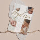 Celebra el bautismo de tu hijo o hija con nuestro hermoso, moderno, minimalista y elegante diseño. Nuestro diseño presenta un diseño de cuatro fotos que crea la imprecación de una cruz. "Bautismo: se muestra en una moderna caligrafía de oro falso. En el reverso hay una cruz de oro fino en el medio.