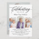 Moderno y elegante collage de fotos de Celebración de la Vida invitación. El diseño cuenta con 3 fotos, tipografía y detalles del servicio en la parte delantera. Personalice aún más con otra foto en la parte trasera.