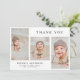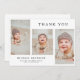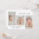 Esta hermosa foto gracias tarjeta de invitación de bebé es ideal para cualquiera que quiera agradecer a los invitados en su ducha de bebé por los regalos, el amor y el apoyo que han recibido, y presentar a su recién nacido al mundo. El diseño moderno y elegante tiene un estilo minimalista y cuenta con tres fotos verticales de personalizable colocadas en un collage moderno y una tipografía elegante para su información. En la parte de atrás está tu mensaje de agradecimiento de personalizable. Utilice el botón "Personalizar" para reemplazar fotos y editar texto.