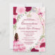 Celebra tu quinceañera con estilo con esta hermosa invitación a las acuarelas rosas. Rosas con acuarela boho, mariposas y vegetación, así como una princesa con cabello rojo quemado con un vestido rosa, una tiara dorada y un purpurina dorado. La redacción es formal, con la invitación de los padres, y cuenta con elegantes letras de guiones. ¡La forma perfecta de invitar a tu familia y amigos a celebrar tu mayoría de edad en tu 15 cumpleaños!