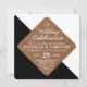 Una boda de color central, con colores de fondo negro y blanco, y un falso parche de cuero que contiene la información para su día especial.