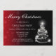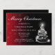 Christmas invitation in landscape orientation with color faded to blend in with solid black background. White sparkle Christmas tree decoration added.