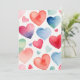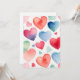 Patrón con una variedad de corazones acuarelas de diferentes tamaños y colores, incluyendo tonos rojos, rosas, verdes y azules, ambientado con un suave fondo blanco. Los corazones exhiben una mezcla fluida y artística de colores con variada opacidad y texturas, creando un ambiente romántico y lúdico. El arreglo es dinámico, con corazones superpuestos y dispersos, lo que le da un aspecto animado y alegre.