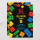 Fun and bold birthday design featuring bright interlocking blocks on a dark background, perfect for creative kids who love to build and celebrate in colorful style.