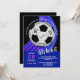 A cool and modern invitation card designed for sporty birthday celebrations, featuring a fully customizable ball graphic where every word, name, number, and message can be personalized, paired with a dynamic blue and purple light-style background and fully editable text throughout, creating a sleek, energetic, and masculine sports-style invitation that’s perfect for boys, teens, and men who enjoy bold and personalized celebration designs.