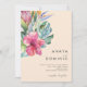 Esta colorida invitación a una boda tropical casual de durazno todo en uno es perfecta para su moderno destino boho, boda verde, violeta y melocotón. El diseño cuenta con un elegante ramo de vegetación acuática clásica y flores que pueden incluir eucalipto verde salado, protea malva y roja, hibiscos rosa rubor, ave paradisíaca naranja y azul, y hojas de palmera verde oscuro. El diseño es ideal para un boda de viajes sencillo, creativo y único para primavera, verano, otoño o invierno. Encontrará otro papel de boda que coincida o coordine el resto de la colección.