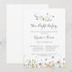Esta colorida y salvaje noche antes del ensayo de la invitación a cenar es perfecta para un evento rústico. El diseño se caracteriza por una acuarela pintada a mano con bonitas flores rosadas, onduladas, azules, navales, amarillas, violetas y verdes.