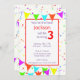 Colorida invitación a la fiesta de cumpleaños de los niños. Este diseño divertido y colorido es ideal para un niño o un chica y le dará el toque perfecto a su fiesta. Coordine con los otros elementos de esta vibrante colección de cumpleaños. Personalízalo con tu nombre o mensaje. Puede elegir fácilmente el tipo de letra y el color del texto en la plantilla de texto. Si te gusta lo que ves, pero no ves lo que necesitas, por favor contacta conmigo para pedir un personalizado. Para sus pedidos y problemas de envío, póngase en contacto con el Servicio de Atención al Cliente de Zazzle a través de https://goo.gl/nCgptf