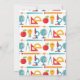 Una invitación de jubilación para una fiesta super adorable con tema escolar que presenta un patrón colorido con globo terráqueo, transportadores, compás, microscopio y más.