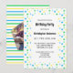 Aniversario del niño con estrellas azules, amarillas y verdes. Personalizable para cualquier edad. Plantilla de foto vía Pixabay bajo licencia CC0 y debe ser reemplazada por su propia foto