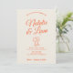 Esta invitación de boda es perfecta para su boda con un diseño único. Una elegante y simple plantilla de invitación de boda minimalista blanca y crema. Que cuenta con un fondo blanco cremoso liso. Y los nombres de la novia y el novio en negrita y naranja debajo de dos copas de vino dibujadas a mano. Y información editable y foto en la parte posterior. Asequible y también es una e-invitación electrónica digital si desea enviarla por mensaje de texto o correo electrónico. Toda la información es personalizable haciendo clic en el botón de personalizar. Así que agarre y haga que sea suya para que sus invitados estén comprometidos y emocionados.
