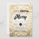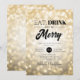Elegante Fiesta de Navidades / Fiesta de vacaciones / Invitación de la fiesta de invierno con diseño de tipografía "Comer, beber y ser moro" y motivos de luces de bokeh en oro. Ideal para fiestas corporativos de cena, bolas de invierno y galas, corbata negra/eventos y fiestas de oficina.