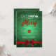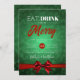 Elegante Fiesta de Navidades / Fiesta de vacaciones / Invitación de la fiesta de invierno con diseño de tipografía "Comer, beber y ser moro" y motivos de luces de bokeh en verde. Ideal para fiestas corporativos de cena, bolas de invierno y galas, corbata negra/eventos y fiestas de oficina.
