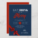 Elegante Fiesta de Navidades / Fiesta de vacaciones / Invitación de la fiesta de invierno con diseño de tipografía "Comer, beber y ser moro". Ideal para fiestas corporativos de cena, bolas de invierno y galas, corbata negra/eventos y fiestas de oficina.