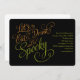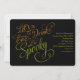Este diseño presenta las palabras "Comamos, bebamos y tengamos miedo" en escritura naranja y verde a la izquierda y los detalles de su fiesta en verde a la derecha. Fijado sobre un fondo negro.