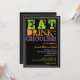 Invite a sus amigos a una noche de comer, beber y asustarse en su castillo con esta divertida invitación para una fiesta de Halloween. Cuenta con tonalidades divertidas de verde liso, naranja de calabaza y malva espeluznante todo sobre un fondo negro de chorro con áreas de texto personalizadas fácilmente para que puedas personalizar con tu información. Hay mucho espacio en la parte trasera para que añadas tu propio texto adicional.