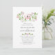 Invitación a la cena con una acuarela floral rosa y ondulada con flores acuáticas pintadas a mano y hojas pequeñas. Invitación informal y elegante para un ensayo de estilo vintage pero contemporáneo.