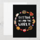 Círculo colorido de comidas icónicas con banderas del país: pizza, sushi, tacos, hamburguesas, croissants, pretzels y fideos. Para los amantes de la comida y viajeros que disfrutan de sabores globales.