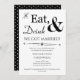 Invite a amigos y familiares a celebrar tu matrimonio reciente con esta divertida invitación retro de negro y blanco ¡Comer, Beber y Estar Casados! para una fiesta de elopamiento.