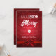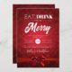 Elegantes Navidades Fiesta / Fiesta de vacaciones / Invitación de la fiesta de invierno con diseño de tipografía "Comer, beber y ser moro" y motivos de luces de bokeh en rojo . Ideal para fiestas corporativos de cena, bolas de invierno y galas, corbata negra/eventos y fiestas de oficina.