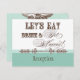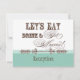 Las fuentes elegantes y divertidas anuncian el mensaje, "¡Comamos, bebamos y casémonos!" en un maravilloso y caprichoso Ensamblado de Invitación a la Boda. En una paleta de colores clara, crujiente, azul acuático, marrón chocolate y blanco, es lo mejor de la cosecha con un toque moderno. La parte delantera tiene el texto y sus nombres con la fecha de su boda. En el reverso están dos ornamentos de impresora con elegante letra caligráfica a mano y el texto "Celebrar con nosotros" en fuentes únicas y divertidas junto con la información de la invitación de la boda. Hay una completa serie de productos disponibles con este diseño y podemos hacerlo en cualquier combinación de colores que desee.